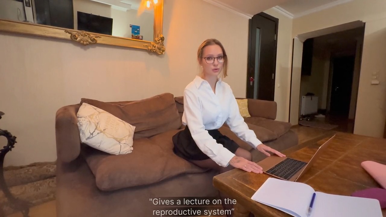 Разговоры — 00:08; соблазняет его — 00:58; пошлости — 02:23, 02:34, 03:20, 04:52, 06:47, 10:18; заглатывает — 02:40; показала сиськи — 03:45; раком — 04:21; потекла — 05:13; скачет на члене — 06:03; мастурбирует — 07:50; миссионерская — 08:09; сквирт — 09:41, 10:06; кончил в рот — 10:40